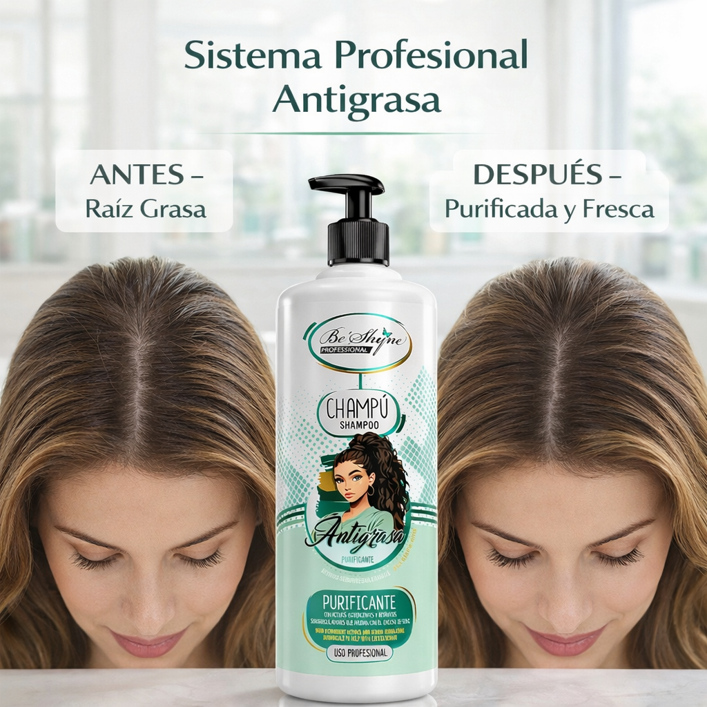 Be’Shyne® – Champú Antigrasa Regulador para Cabello Graso 1L