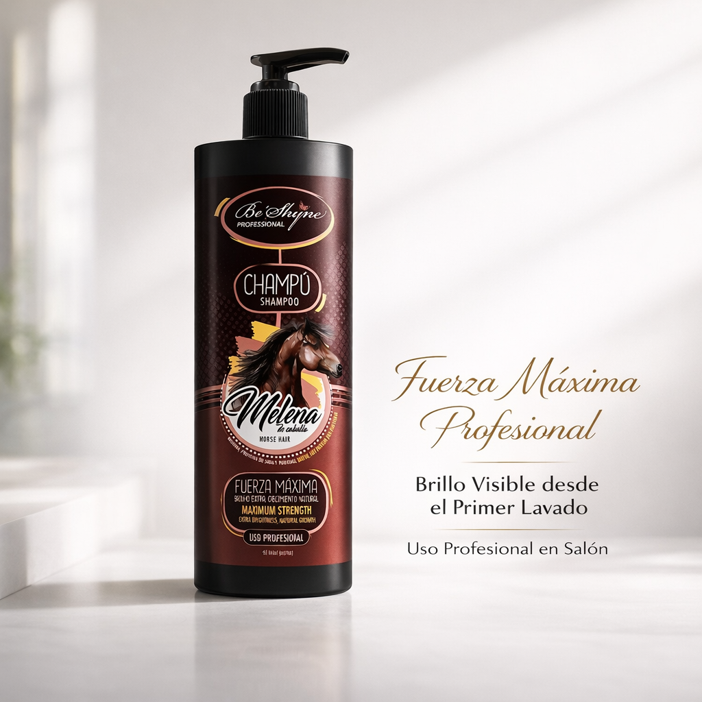 El Champú Melenas Be´Shyne es un limpiador formulado para todo tipo de cabello, también conocido como champú Melena de Caballo. Está diseñado para limpiar el cabello mientras contribuye a mejorar su aspecto general.