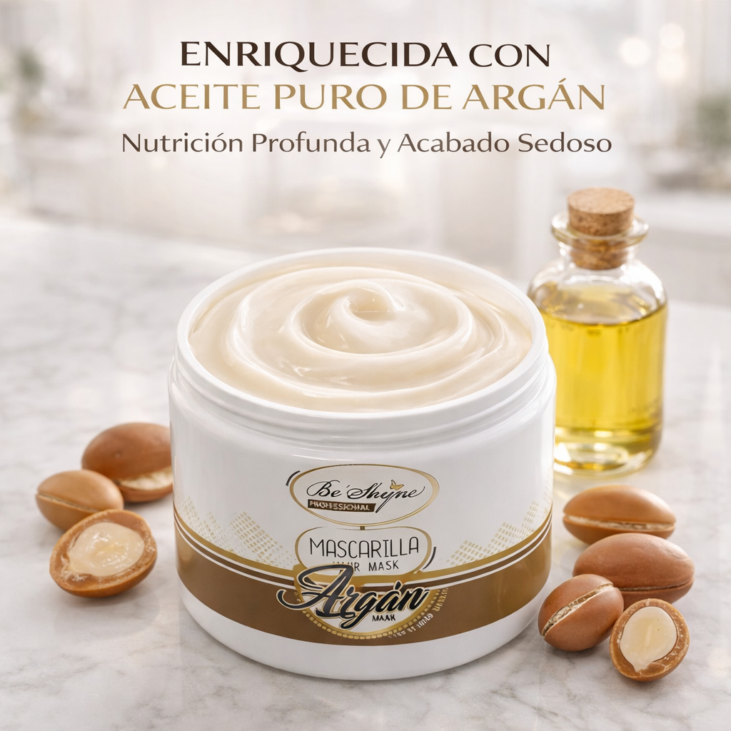 Be´Shyne® - Mascarilla de Argán Nutritiva y Reparadora para Cabello Seco o Dañado 1L