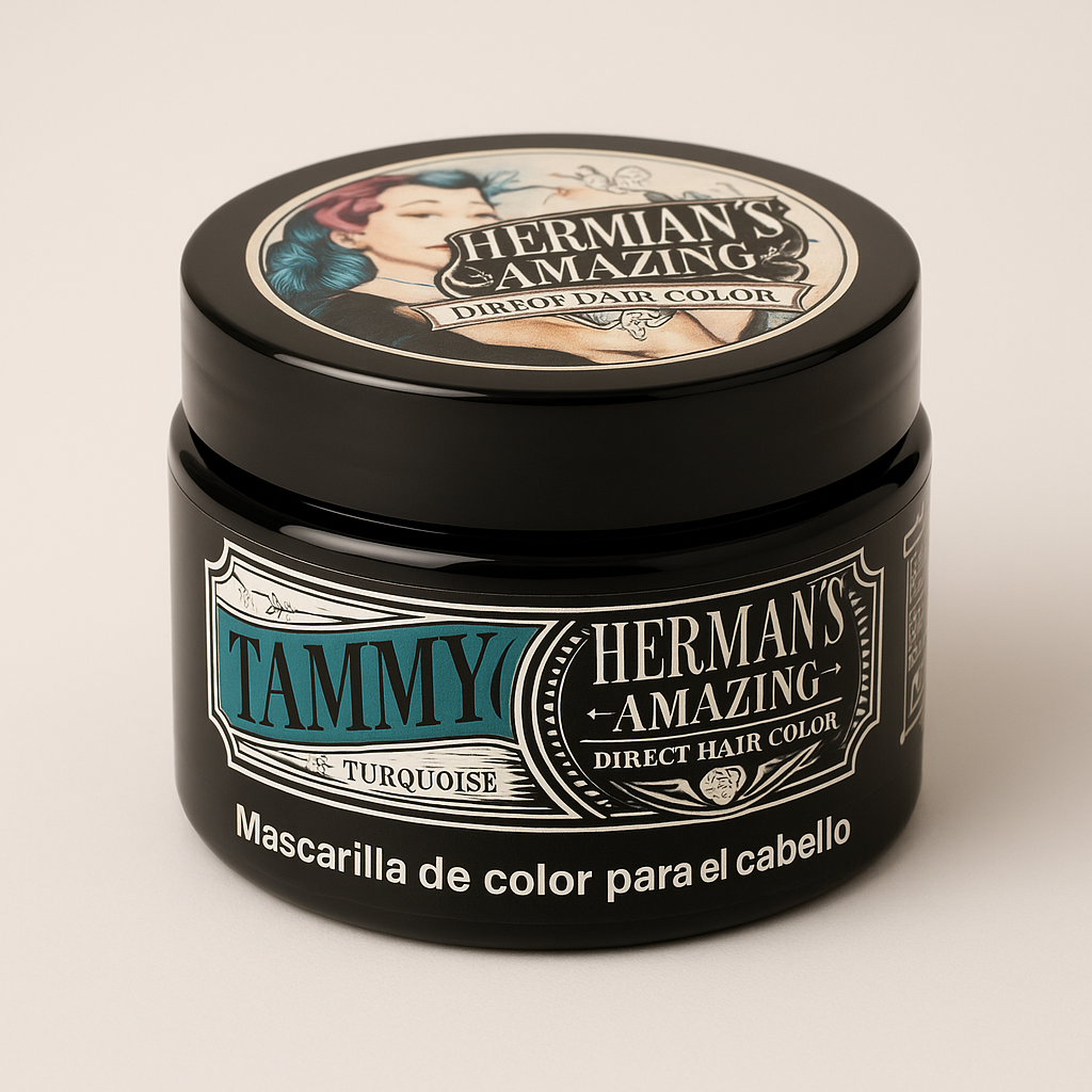 La mascarilla de color Tammy Turquoise de Herman’s Amazing es una mascarilla capilar pigmentada diseñada para aportar un tono turquesa al cabello de forma temporal. Está indicada para refrescar, mantener o intensificar colores fantasía entre aplicaciones sin recurrir a tintes permanentes.